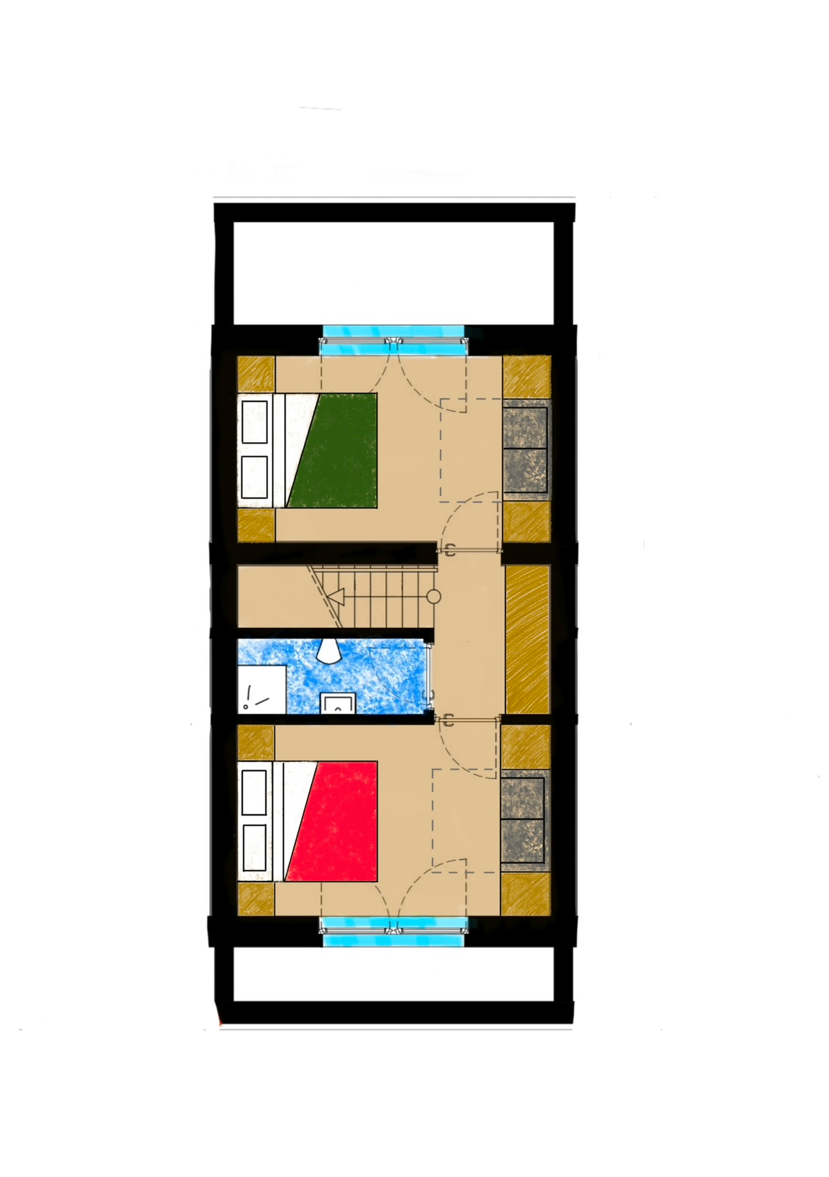 Eine moderne Wohnung mit 70 m² auf zwei Ebenen, gestaltet, um helle und funktionale Räume zu bieten. Sie verfügt über zwei Schlafzimmer, zwei Badezimmer, ein Wohnzimmer mit vollständig ausgestatteter Küche (mit Induktionskochfeld, Ofen und Geschirrspüler). Waschmaschine und Föhn fehlen ebenso wenig, um den Aufenthalt noch praktischer zu machen.